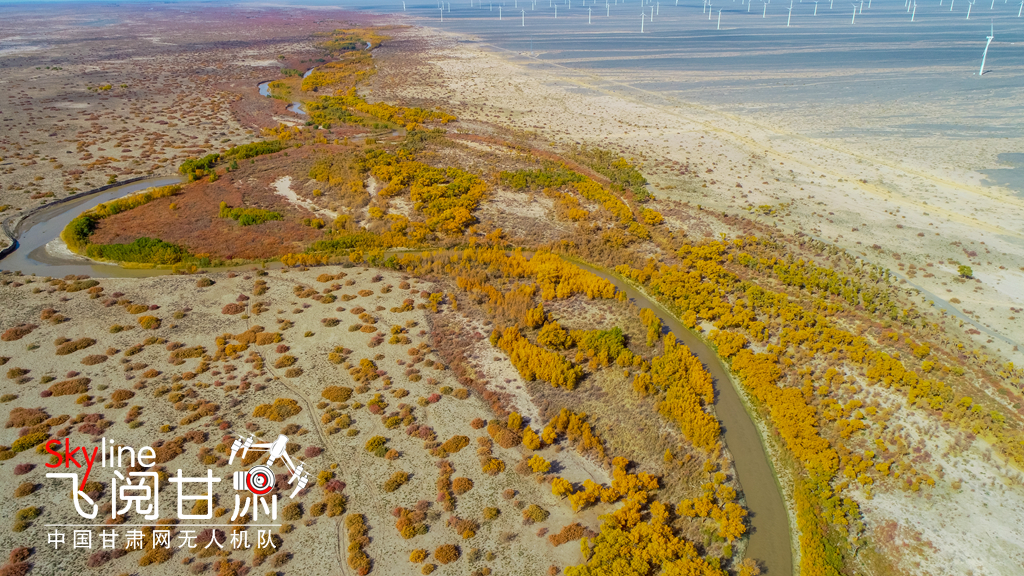 金秋十月,在疏勒河水的浸潤下,大片的胡楊金光閃爍,為古老的疏勒河古道繞上了一條金色的絲帶,為河西走廊增添了一道亮麗的色彩,疏勒河正在邁向河暢、景美、岸綠的生態(tài)文明發(fā)展之路。