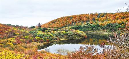 這里一年四季皆有值得欣賞的美景,可謂一時(shí)一景。春夏時(shí)節(jié),桃木山一帶草木蔥蘢,峰嶺翠嶂,前、后兩湫在一望蔚然的萬(wàn)千丘壑中辟出兩點(diǎn)平闊明凈的幽境,像不惹凡塵的仙女隱在人跡不到處,任群山映襯著清靈俊秀的模樣,吐納著關(guān)山深處的空靈氣息。其前湫水深波靜,不能見底,水草飄搖,游魚雜出,水面倒映著四岸草木和亭臺(tái)曲欄,岸邊偶有漁人垂釣或游客輕歌,一派清幽韻致。后湫水淺色深,人工砌成的蓮花臺(tái)處于密藻之中,水邊泉眼密布,形成陰濕滲水帶,西側(cè)與北坡各有一座寺院,白墻金頂隱在一片蔥蘢之中,點(diǎn)綴成趣。每到初夏,后湫北坡般若寺周圍遍開一種白色野花,因必為兩朵連枝并開,人們稱其姊妹花。此時(shí)遠(yuǎn)望近觀,可見花濃成勢(shì),純潔芬芳,自成一景。若在清晨或雨后,云霧彌漫山間,湫池的青白水面在渺渺煙雨中依稀顯隱,變幻不定,斯山斯水頓如仙界。