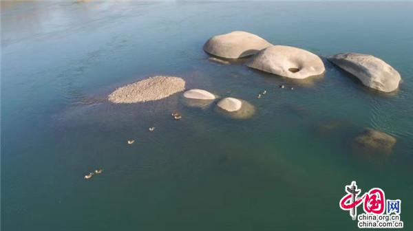 1月12日,在湖南桃江羞女湖國家濕地公園當(dāng)?shù)財(cái)z影家協(xié)會(huì)成員用無人機(jī)有幸拍到一群正在資江戲水的野生保護(hù)物種——斑嘴鴨。