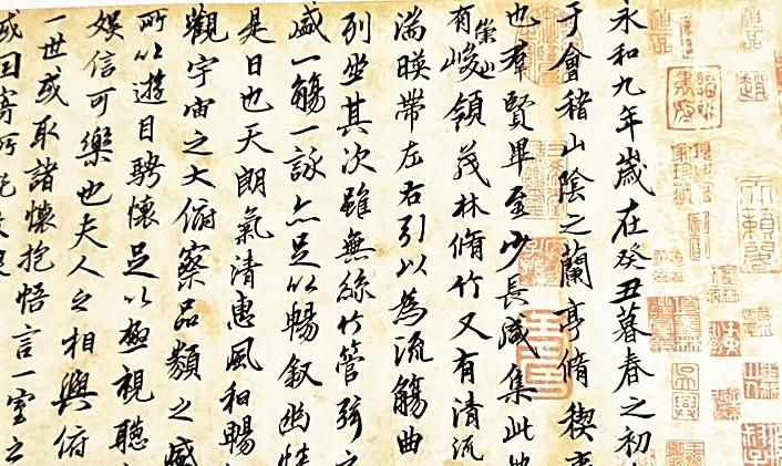 何為不朽?不朽在于引起后代的共鳴,于后人幾成緬想。那遠去的曾經(jīng),在身邊現(xiàn)實中已經(jīng)難以找尋,個體的記憶怎樣傳承歷史厚重,也許這也是一種最好方式。那張涂抹得一塌糊涂的紙,一千多年來,從沒有消停過,穿越時空,無數(shù)人一棒接過一棒,在手中傳承,揣摸,膜頂,令無數(shù)書法愛好者追慕效法。很多人正是通過觀摩學習《蘭亭序》,愛上書法藝術,進而走入這門高雅的書法藝術殿堂。