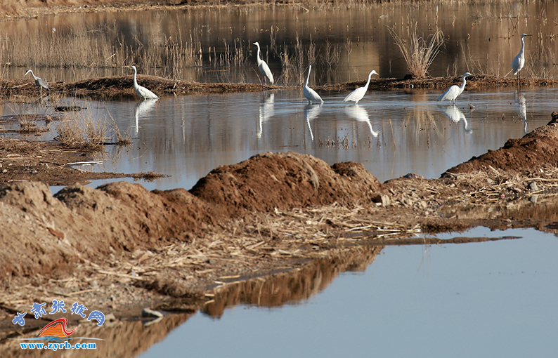 初春時節(jié),山丹縣祁家店水庫濕地成百上千的天鵝、白鷺、灰鶴、野鴨等幾十種鳥類成群結對,引頸高歌,或追逐覓食,或結伴翱翔,成為一道亮麗的風景線。