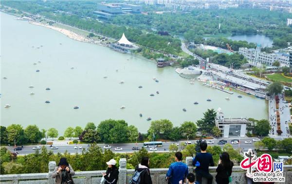 在大洞山、督公湖景區(qū),小丑嘉年華、氣球玩偶秀、魔法實(shí)驗(yàn)室等成為假日溜娃的好去處,大小朋友在碧水藍(lán)天下與白鴿零距離互動(dòng),呈現(xiàn)了人與自然的和諧相處,非物質(zhì)文化遺產(chǎn)項(xiàng)目表演“一葦渡江”中的漢服小哥衣袂飄飄地立于竹竿上,成為督公湖上一道靚麗的風(fēng)景線。