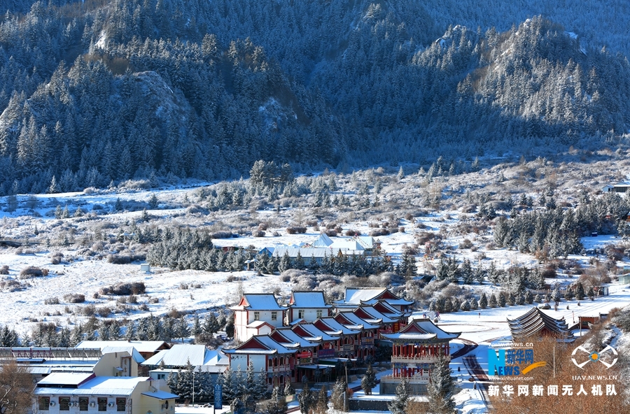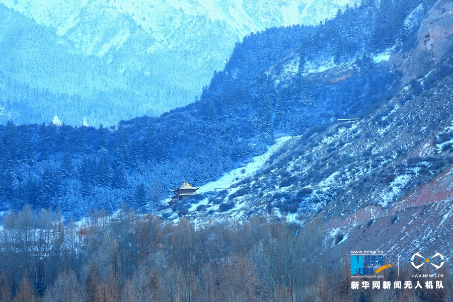 這是11月21日航拍的甘肅省張掖市肅南裕固族自治縣馬蹄寺風(fēng)景區(qū)雪景。新華網(wǎng)發(fā)(楊永偉 攝)