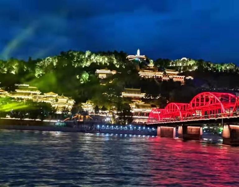 在這條美麗的河畔邊,政府打造的新型地標建筑更為這條母親河添上華麗的一筆。夜晚,在美麗的黃河之濱,黃河樓作為蘭州市新地標,在節(jié)日期間展開震撼人心的幻影燈光秀,不僅有伴隨著音樂鼓點不斷變化的彩燈交織環(huán)節(jié),更有一場富有歷史文化色彩的燈光與水霧交融的真人演繹表演。從蘭州歷史文化淵源追溯,至現代智慧蘭州,文明蘭州,黃河樓以燈光和音樂及特效的多方位演繹形式,為在場的市民及游客打開一番與眾不同的視覺盛宴。一位來自嘉峪關的游客告訴記者:“美麗的燈光秀給我心靈上帶來了震撼,它不僅僅是視覺上的刺激,更帶有蘭州這座古城更深層的文化底蘊,讓我們了解到黃河文化,絲路文化,了解到金城蘭州的歷史故事,更對現代蘭州、智慧蘭州和文明蘭州產生深刻的了解和憧憬。”