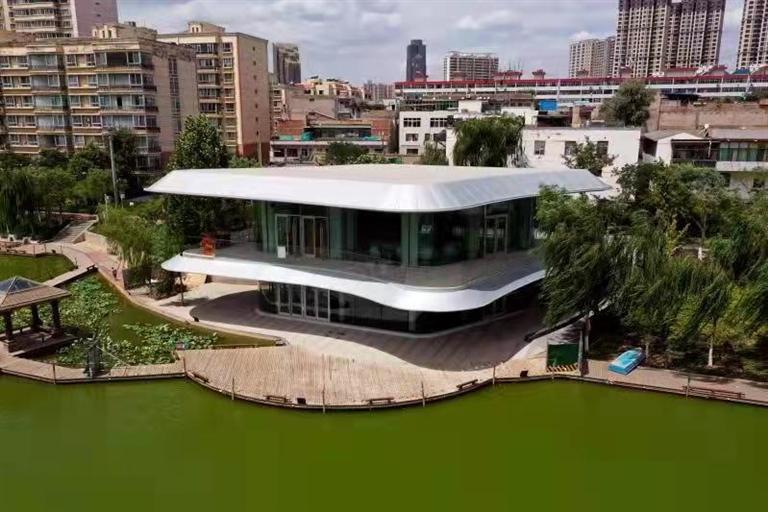 這座公園被譽為“鑲嵌在黃河邊上的綠寶石”,以水景作為核心景觀,在水與島、水與綠之間架設形式各異的木橋,形成全園的景觀骨架,并以保護生態(tài)為主要宗旨,使公園內植物、水鳥以及黃河水域達到生態(tài)平衡。