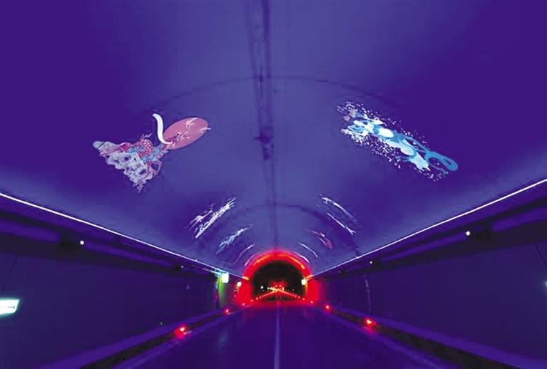 景觀照明系統(tǒng)主體效果充分融合甘肅文化特色,采用“飛天壁畫”“沙漠駝隊”等元素,利用洗墻燈襯托底色,投影燈展現(xiàn)景觀效果,實現(xiàn)為司乘人員打造人在畫中游的視覺感官,有效解決隧道內(nèi)長時間駕駛的視覺疲勞和情緒波動,提升司乘人員駕駛舒適度。