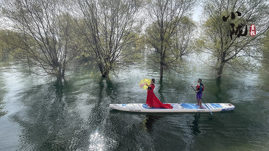 春日里,炳靈湖上鶴舞鷗翔,風(fēng)如絲,水如綢,蕩舟其中,正是一幅“舟行碧波上,人在畫中游”的美麗畫卷。
