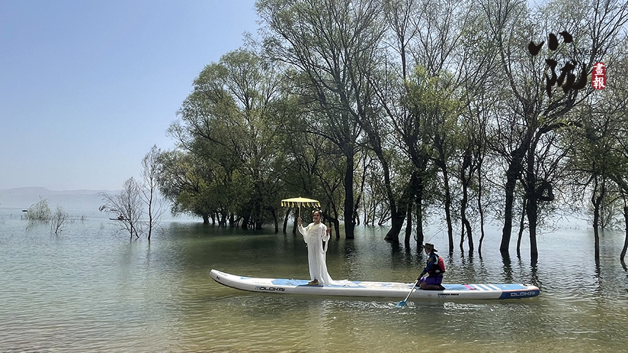 清明前后,炳靈湖水位上漲,寺溝峽谷碧水蕩漾,垂柳依依,景色宜人,槳板愛好者和游客在這里泛舟,以更輕盈的方式邂逅世界文化遺產(chǎn),摩崖大佛、奇峰赤壁、碧水垂柳,構(gòu)成了一幅幅絕美的畫圖。