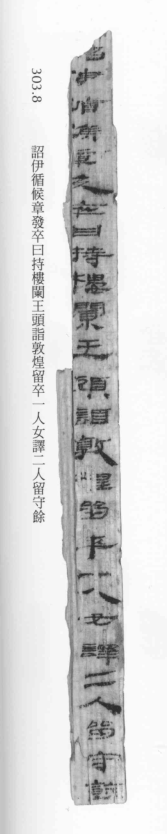 這是樓蘭王及部眾二百六十余人由西向東去長安時,敦煌郡為做好接待工作而做準(zhǔn)備的發(fā)文,要求準(zhǔn)備必要的車馬集中到敦煌以備樓蘭王一行使團使用。簡文標(biāo)點作“樓蘭王以下二百六十人當(dāng)東傳車馬,皆當(dāng)柱敦。”本簡沒有具體的紀(jì)年時間,從簡牘記載的“樓蘭王”字樣可知,此簡的時代在昭帝早期即元鳳四年之前(前77年),自公元前77年傅介子伐樓蘭之后,樓蘭國改名為鄯善國。