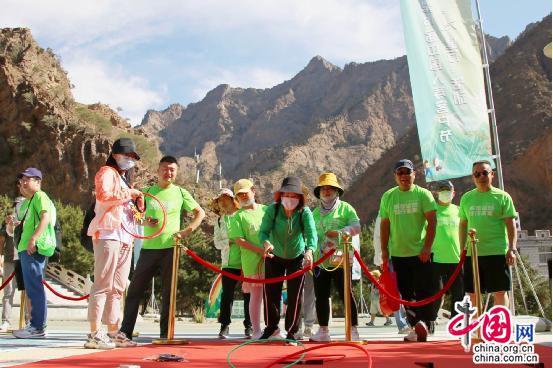 隨著一曲國(guó)壽版“本草綱目”健身操結(jié)束,領(lǐng)導(dǎo)嘉賓齊鳴槍后,一簇簇國(guó)壽綠在賀蘭山中由起點(diǎn)“黨建廣場(chǎng)”到站點(diǎn)1“滿江紅”再到站點(diǎn)2“青松嶺”,逐漸陸續(xù)綻放,這是第十六屆寧夏國(guó)壽客戶節(jié)絢爛盛開(kāi)的印記。
