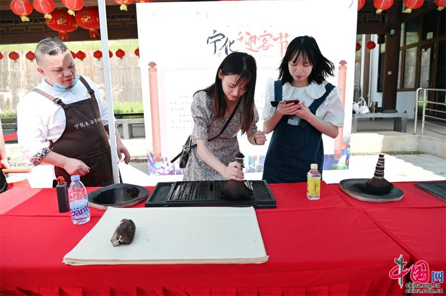 古色古香的蛟湖黃慎文化園,原為清代著名畫家,揚州八怪之一的黃慎所建。他在這里讀書作畫,其詩集《蛟湖詩鈔》流傳至今?;顒蝇F(xiàn)場,游客們一邊欣賞文化園的古色印記,一邊品鑒名人書畫展,遍覽寧化四色資源。(陳祥臨)