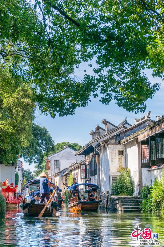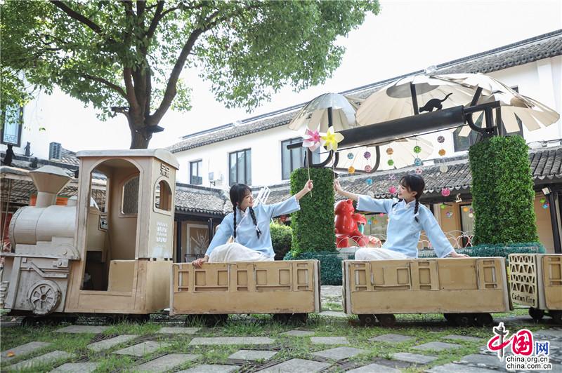 夏日遲遲至,古鎮(zhèn)緩緩行。坐一趟手搖船,穿行在23°的水巷,看陽光透過樹影落在水面上的斑駁,聽搖櫓聲聲撥動碧水的悠然,悄然經過匆匆那年。赴一場紙箱王之約,穿梭在紙藝王國,吃一頓盈滿時光的紙上美食。坐上紙做的小火車放飛夢想,在紙箱王古郵局描繪出未來的藍圖。行走在貞豐文化街上,看貞豐十二坊的匠人匠心,觀水鄉(xiāng)周莊的人間煙火。走累了便去蘇繡藝舍感受蘇繡的獨特魅力,到爐韻沉香研習香道茶藝……一盞清茶一爐香,一衣帶水歸故鄉(xiāng)。