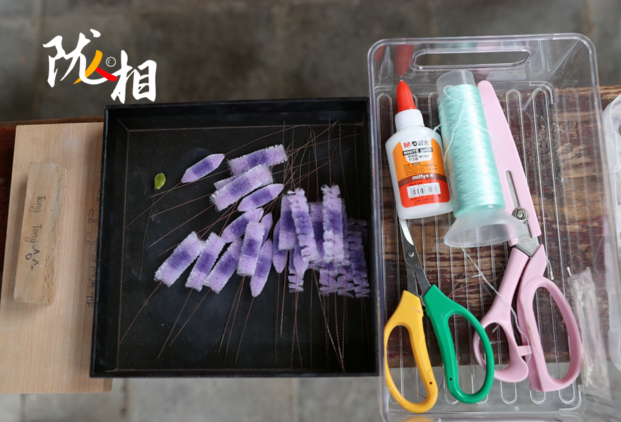 “我也在不斷學(xué)習(xí),現(xiàn)在可以用仿點(diǎn)翠工藝,讓簪花更有質(zhì)感。”宗怡彤說道。