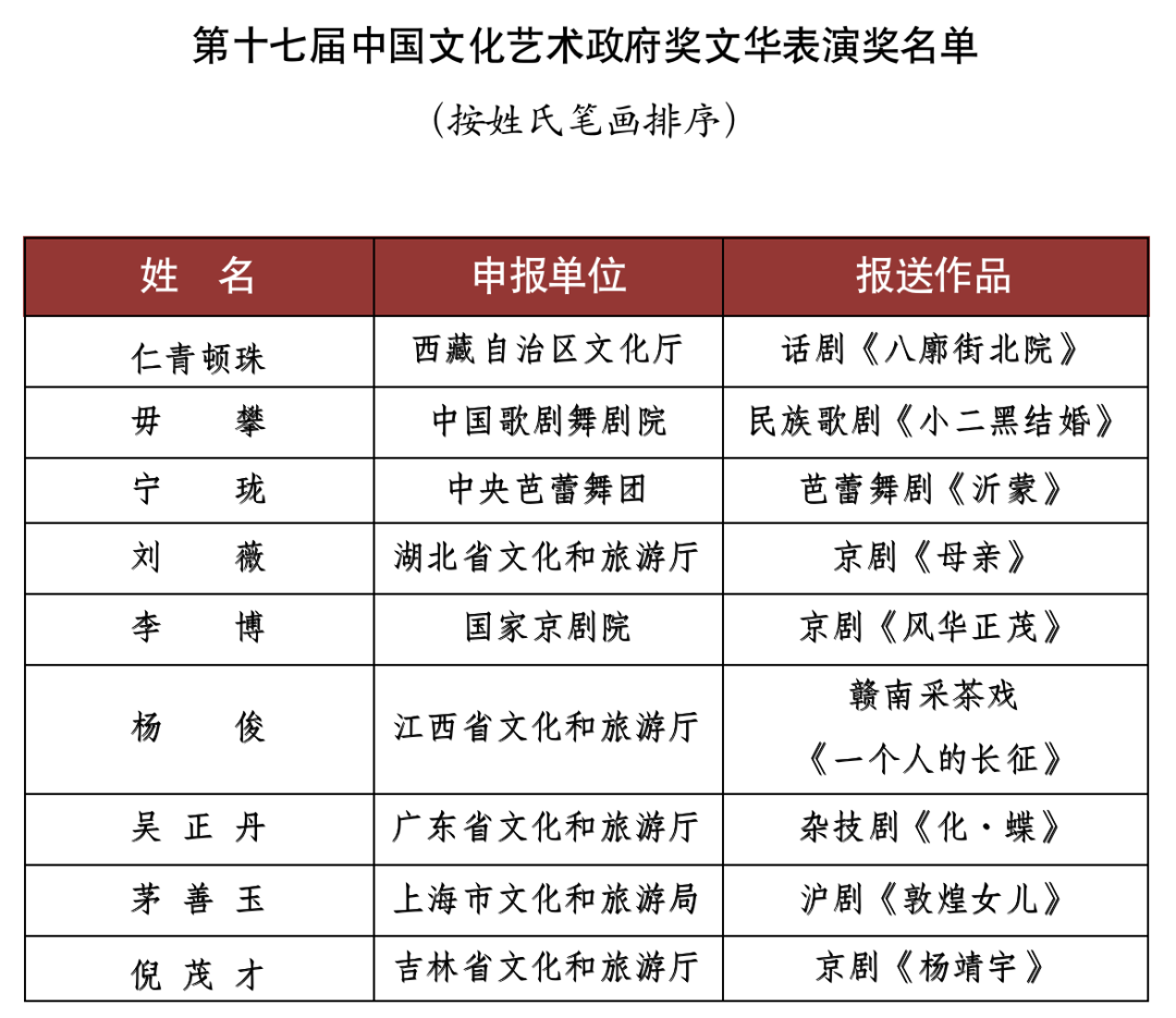 據(jù)了解,文華獎是根據(jù)《中國文化藝術政府獎——文華獎章程》《中國文化藝術政府獎——第十七屆文華獎評獎辦法》,經(jīng)第十七屆文華獎評獎委員會組織專家評審,并報文化和旅游部批準評選出的。