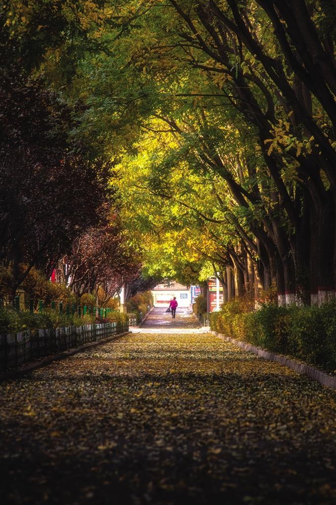 中國甘肅網(wǎng)11月4日訊 據(jù)蘭州晚報報道(通訊員 陳立穩(wěn) 記者 張鵬偉 攝)晚秋,藏著秋季里最美的景色。在這個如童話般的深秋季節(jié)里,皋蘭縣街道兩旁的國槐變成了金黃色,人民廣場的楓葉在霜的洗禮下漸漸轉(zhuǎn)黃,再由黃變紅。梧桐、銀杏的落葉交織,各種菊花競相綻放,綠、黃、紅、紫交織在一起,組成了皋蘭最美的秋色。
