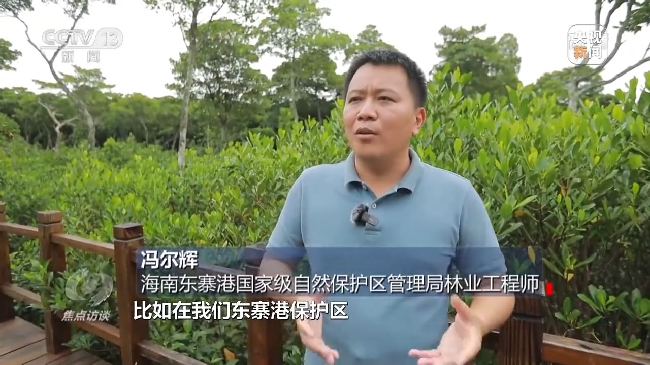 海南??谑辛謽I(yè)局局長、林業(yè)高級(jí)工程師 錢軍:在東寨港區(qū)域,我們修復(fù)了4783畝的紅樹林。通過對(duì)一系列生態(tài)修復(fù),保護(hù)好紅樹林,也讓子孫后代享受保護(hù)紅樹林帶來的紅利。