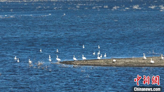 博湖縣境內(nèi)的博斯騰湖白鷺洲迎來(lái)大批天鵝。 年磊 攝