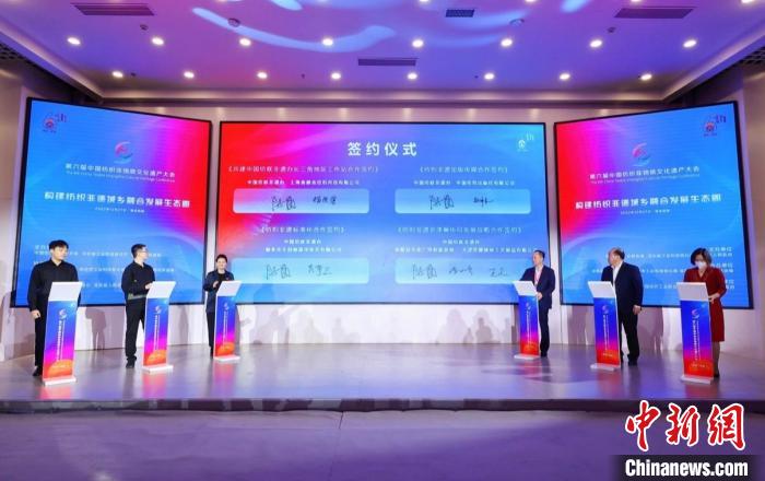 會(huì)上,嘉賓們共同見(jiàn)證了共建中國(guó)紡聯(lián)非遺辦長(zhǎng)三角地區(qū)工作站合作簽約、紡織非遺出版?zhèn)髅胶献骱灱s、紡織非遺標(biāo)準(zhǔn)化合作簽約、紡織非遺京津冀協(xié)同發(fā)展戰(zhàn)略合作簽約、昆曲《御題棉花園》項(xiàng)目啟動(dòng)簽約、我家的毛巾會(huì)唱曲兒授權(quán)合作簽約、共建河北大學(xué)高陽(yáng)文化研究中心合作簽約等多項(xiàng)合作的達(dá)成。舉辦了中國(guó)紡織非遺推廣大使“推進(jìn)城鄉(xiāng)融合發(fā)展、全面實(shí)現(xiàn)鄉(xiāng)村振興”倡議行動(dòng)。