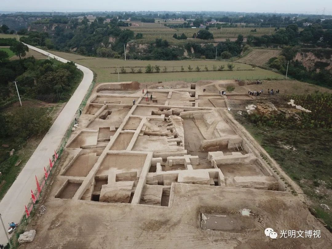 甘肅慶陽西峰西郊的南佐遺址,坐落在黃土高原第一大塬——董志塬上,傳說中這里是黃帝部族的重要活動地域,也是以農(nóng)業(yè)著稱的周人祖先不窋?shù)睦霞?。南佐遺址發(fā)現(xiàn)于1958年,1984—1986年和1994—1996年有過兩個階段的發(fā)掘,從2021年開始第三階段的發(fā)掘和調(diào)查、勘探工作,基本確認(rèn)這是一處以仰韶文化晚期大型聚落為主體的遺址,遺址面積在600萬平方米以上,可能有外環(huán)壕。聚落中部是由9座方形夯土臺及其環(huán)壕圍成的面積約30萬平方米的核心區(qū),核心區(qū)中部偏北是數(shù)千平方米的由“護(hù)城河”和夯土宮墻圍成的“宮城”。“宮城”中心為主殿,“九臺”之外還有多處居住區(qū)、夯土臺、溝渠水利設(shè)施等遺存,出土了大量白陶、黑陶等珍貴遺物和大量水稻,從多個方面顯現(xiàn)出早期國家和文明社會的氣象。