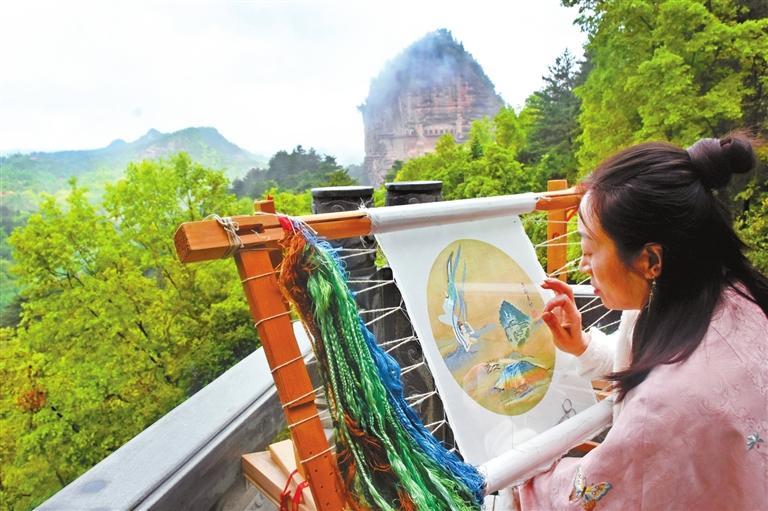 “應(yīng)用現(xiàn)代審美思維創(chuàng)作出麥積山石窟系列刺繡文創(chuàng)作品,麥積刺繡藝術(shù)品的觀賞價(jià)值和實(shí)用價(jià)值會(huì)進(jìn)一步凸顯。”曹苑春說(shuō)。除此之外,畫(huà)繡、雙面繡團(tuán)扇、香包、刺繡宮燈、刺繡擺臺(tái)等作為裝飾生活的藝術(shù)品,已被很多人所喜愛(ài),刺繡作品正以全新的面貌走入尋常百姓家。