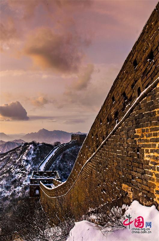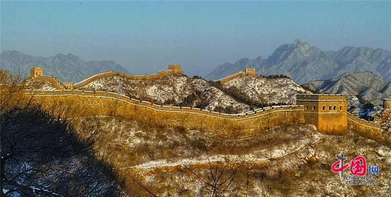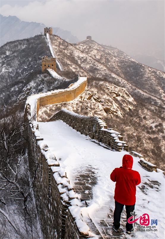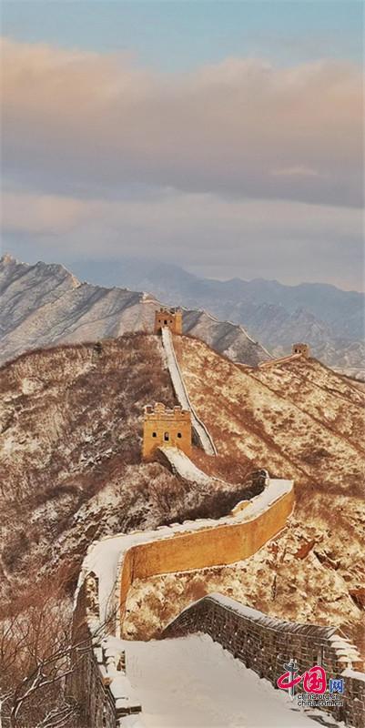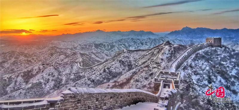 皚皚白雪覆蓋長(zhǎng)城內(nèi)外,銀裝素裹金山嶺氣勢(shì)磅礴。