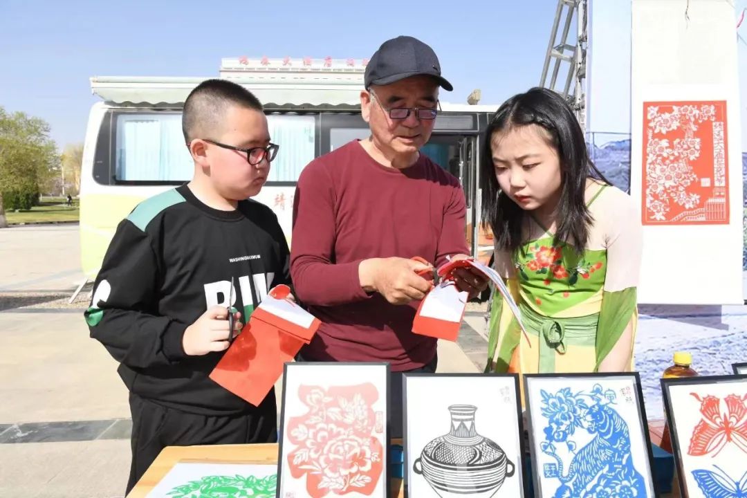 市級非遺保護(hù)傳承項目靖遠(yuǎn)剪紙傳承人王世義正在教小學(xué)生剪紙。喬麗霞 攝