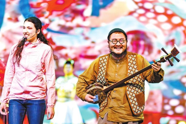音樂響起,舞蹈《絲路之光》以漢唐雄風(fēng)暢迎四海賓朋,鏗鏘有力的武術(shù)表演《問道崆峒》引發(fā)陣陣掌聲、雜技《生命禮贊》讓觀眾的心懸在了半空中又落下、敦煌復(fù)原服飾秀《絕色敦煌》讓觀眾“沉浸式”感受黃河文化、長城文化、絲路文化的交融與碰撞。演員們身著民族服飾載歌載舞集中展示甘肅省少數(shù)民族的獨(dú)特人文風(fēng)情和各族人民對美好生活的禮贊。除此之外,甘肅本土民謠音樂人張尕慫和英國音樂人肖恩聯(lián)合創(chuàng)作的《我畫個甘肅給你看》,通過音樂舞蹈向海內(nèi)外游客發(fā)出暢游如意甘肅的誠摯邀請。