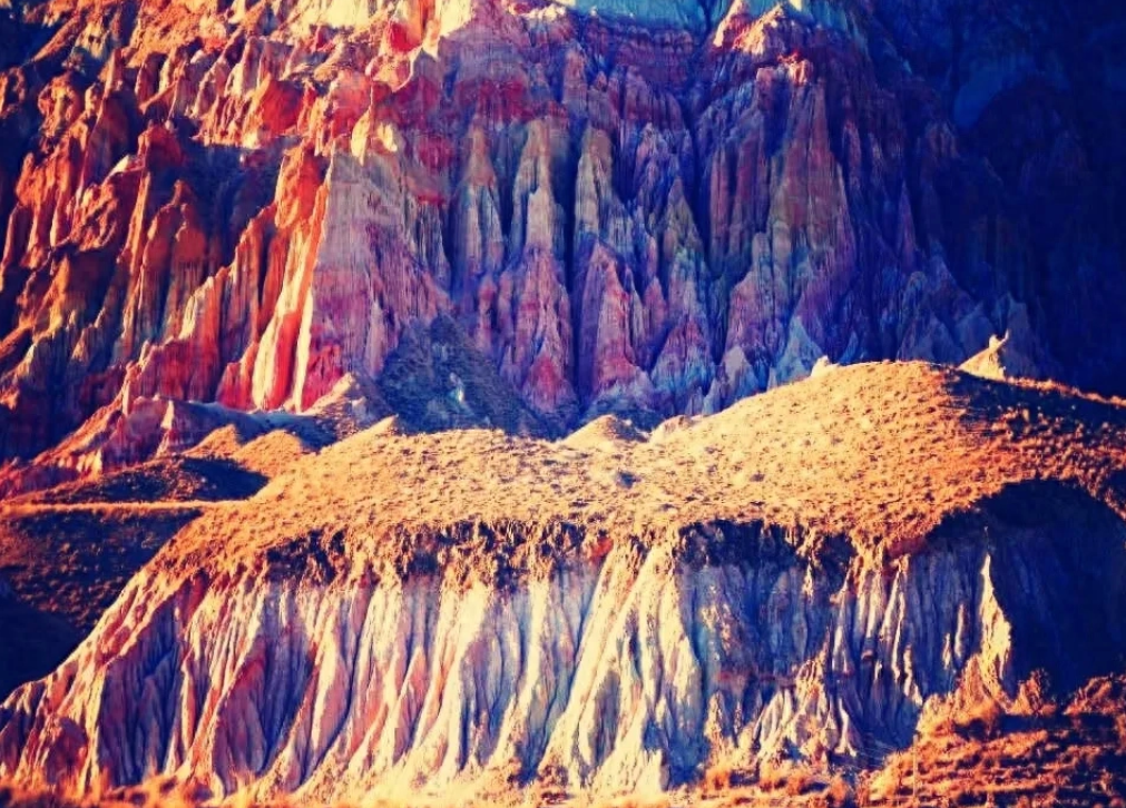 外星谷星際主題地質(zhì)公園是地貌景觀的集大成者,它以眾多地質(zhì)地貌景觀向我們展示出了大自然的神奇魅力。公園內(nèi)主要由五彩砂礫巖形成的峽谷、丘陵、崖壁等地貌景觀為主。