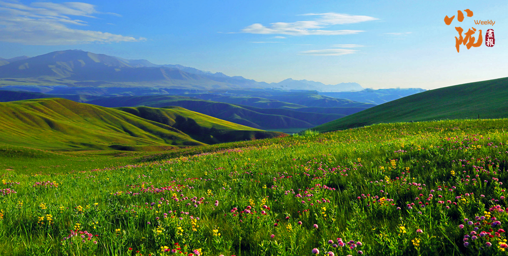 祁連山下綠草如茵,牛羊點(diǎn)綴其中,別具風(fēng)情。