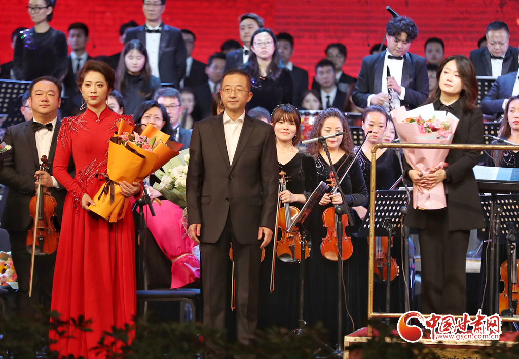 上半場演出,管弦樂《吉祥祁連》 、竹笛與樂隊《花兒隨想》、合唱《月牙泉的傳說》《黃河少年》、獨唱與合唱《簡牘》等陳世祥原創(chuàng)作曲作品接連亮相。管弦樂《吉祥祁連》全曲分為情歌、酒歌、牧歌、歡歌,刻畫了絢麗多彩的民族風情以及祁連山下各族兒女對美好生活的無限向往。竹笛與樂隊《花兒隨想》以鄉(xiāng)間少年參與花兒會的所見所想為線索,描繪出花兒會上從晨曦時刻到落日余暉的畫面,將西北花兒歌詠會上的山水風光,晨夕變幻、巧遇少女、訴說心意、慶典炫技的豐富場景徐徐展開。獨唱與合唱《簡牘》是一首用“行香子”詞牌來吟誦甘肅簡牘文化的藝術歌曲,“簡牘斷章,寥寥數(shù)行”,循著一枚枚簡牘的歷史記憶,回溯一幕幕西域往事,生動地呈現(xiàn)出中華文明包容開放的姿態(tài)印記。
