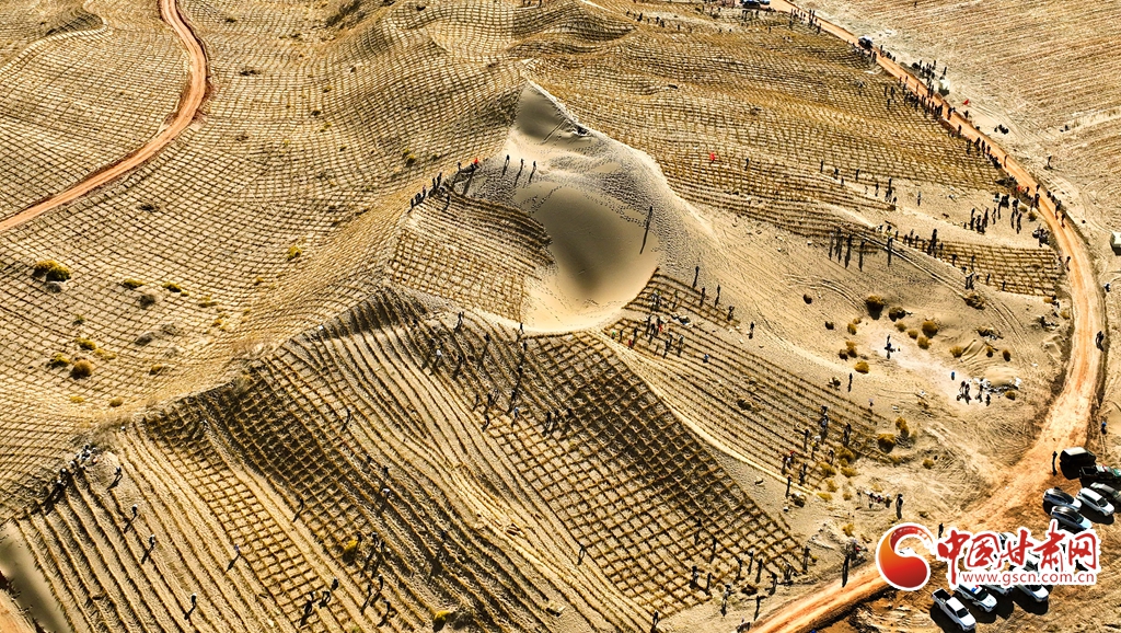 10月31日,河西走廊——塔克拉瑪干沙漠邊緣阻擊戰(zhàn)張掖區(qū)域戰(zhàn)役正式啟動(dòng),張掖市千名市民來(lái)到高臺(tái)縣巴丹吉林沙漠南緣西沙窩風(fēng)沙口治理區(qū)共同義務(wù)壓沙障。