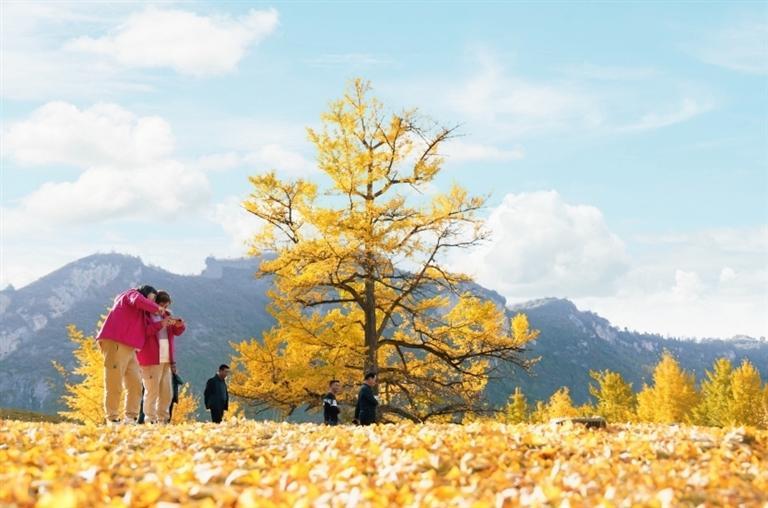 金秋時(shí)節(jié),走進(jìn)徽縣嘉陵鎮(zhèn)田河村,恍若走進(jìn)了金色的仙境。153棵古銀杏樹滿身金黃,一地落葉似“金色地毯”。銀杏樹下,品銀杏茶、吃銀杏果、享銀杏風(fēng)情,美不勝收,吸引眾多游客前來拍照打卡。如今,美麗風(fēng)景變身“美麗經(jīng)濟(jì)”,當(dāng)?shù)匾劳星赉y杏資源優(yōu)勢,引進(jìn)“銀杏夢谷”旅游項(xiàng)目,打造集旅游觀光、生態(tài)康養(yǎng)、休閑娛樂、農(nóng)特產(chǎn)品銷售為一體的美麗鄉(xiāng)村旅游示范點(diǎn),讓千年古樹煥發(fā)新的生機(jī)。本報(bào)記者 冉創(chuàng)昌 高瓊 攝