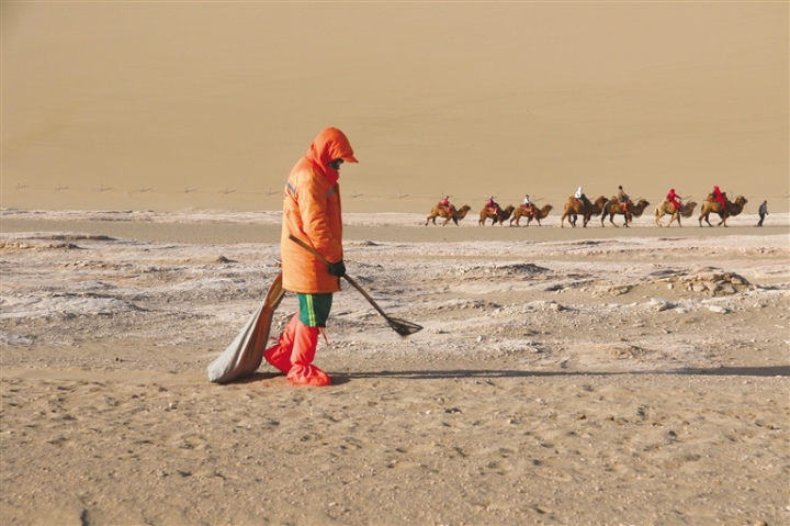 在鳴沙山·月牙泉景區(qū),負(fù)責(zé)執(zhí)勤的景區(qū)派出所民警,不僅維護(hù)景區(qū)及周邊的治安,也為游客提供熱心周到的服務(wù),僅在沙漠中為游客尋找的手機(jī)每年就有100余部,尋找返還隨身物品200余件,用“5A”警務(wù)服務(wù)5A景區(qū)。