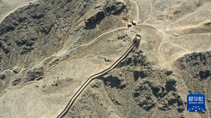 這是5月17日在甘肅省嘉峪關市拍攝的懸壁長城(無人機照片)。新華社記者 陳斌 攝