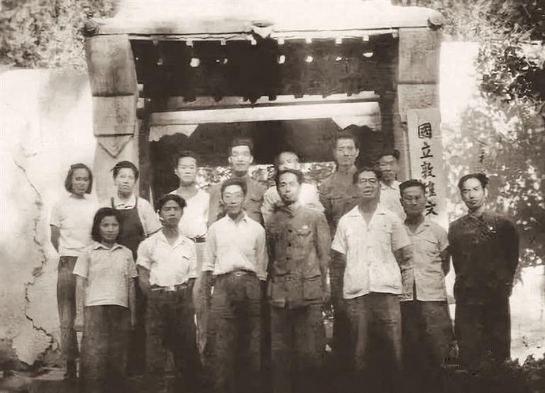 有一件事情在趙季平腦海里久久縈繞,難以忘懷。當(dāng)年,趙季平的父親、著名畫(huà)家趙望云曾有兩次不平凡的敦煌之行,但時(shí)隔多年,隨著時(shí)間的推移,他多次尋找父親敦煌之行的資料都未能如愿。這次在敦煌采風(fēng),趙季平又托朋友多方打聽(tīng),希望能幫助他尋找到那段難以釋懷的歷史。原敦煌市政協(xié)副主席高德祥先生多方努力,幾經(jīng)周折,終于在敦煌研究院的歷史檔案中發(fā)現(xiàn)了唯一一張照片:是趙望云代表人民政府接收國(guó)立敦煌藝術(shù)研究所時(shí),與張明坦、常書(shū)鴻、段文杰、李承仙、范文藻、孫儒僴等人在研究所大門前的合影。高德祥囑托好友韓蘭魁先生將照片帶給了趙季平。
