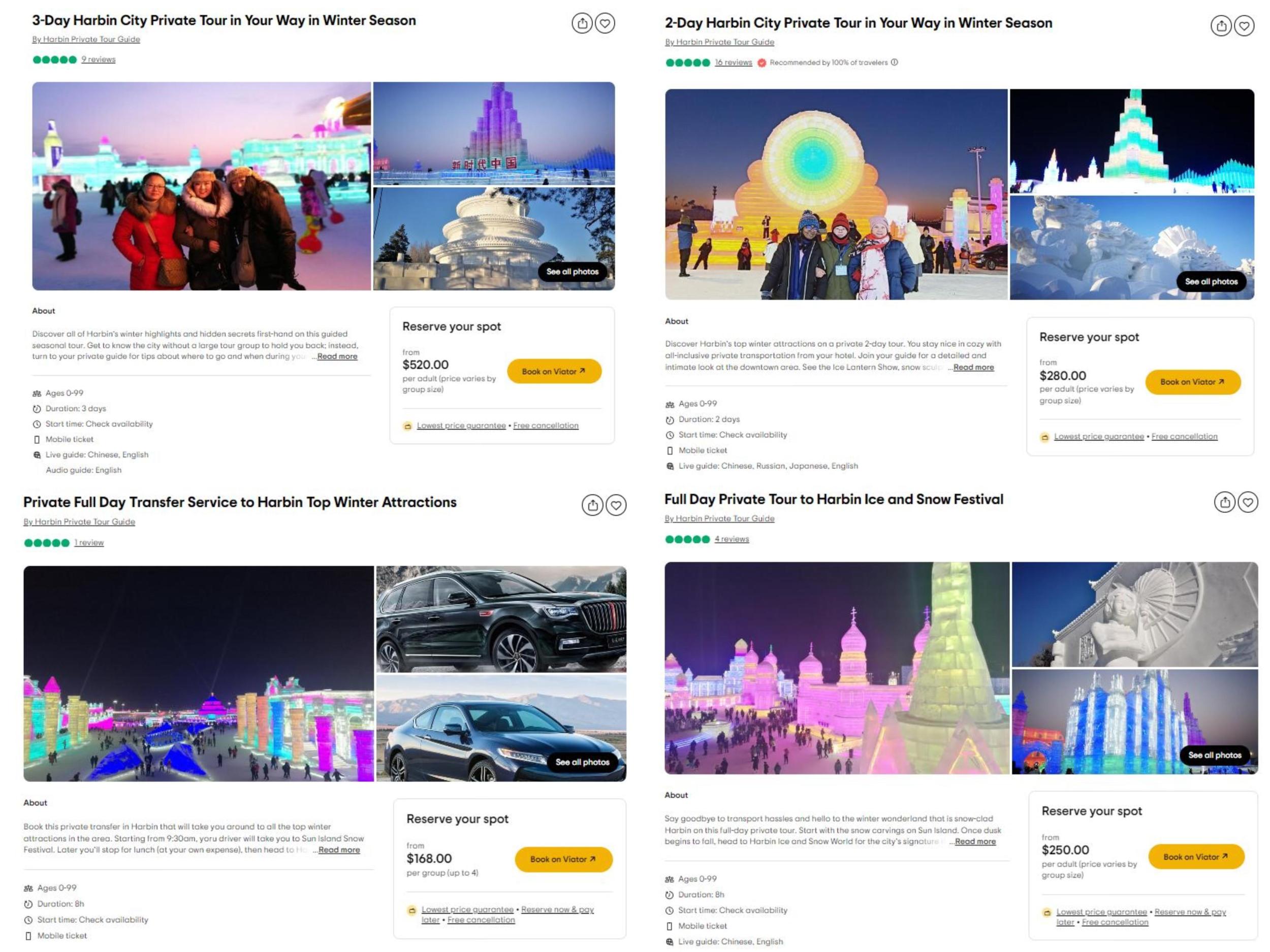 在多個海外旅行平臺上,都可以看到關于哈爾濱旅游的信息。