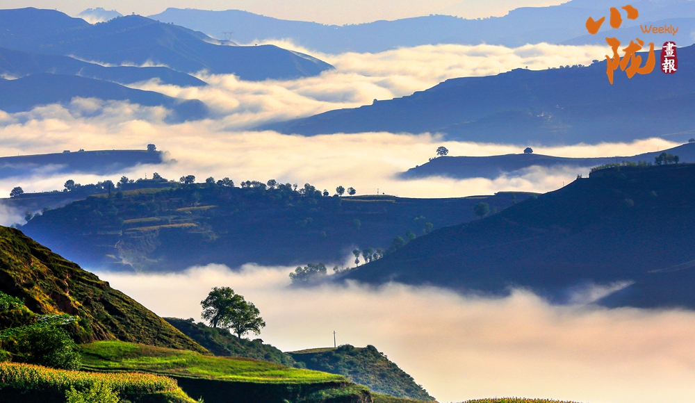 一塊塊梯田,從山峁到山腳,依次而下,大大小小,一層層、一片片,遠(yuǎn)遠(yuǎn)望去,千層萬(wàn)疊,一片紛繁。蔥綠與明黃裝扮的沃野,是季節(jié)的舞衣,也是莊戶人的希望。