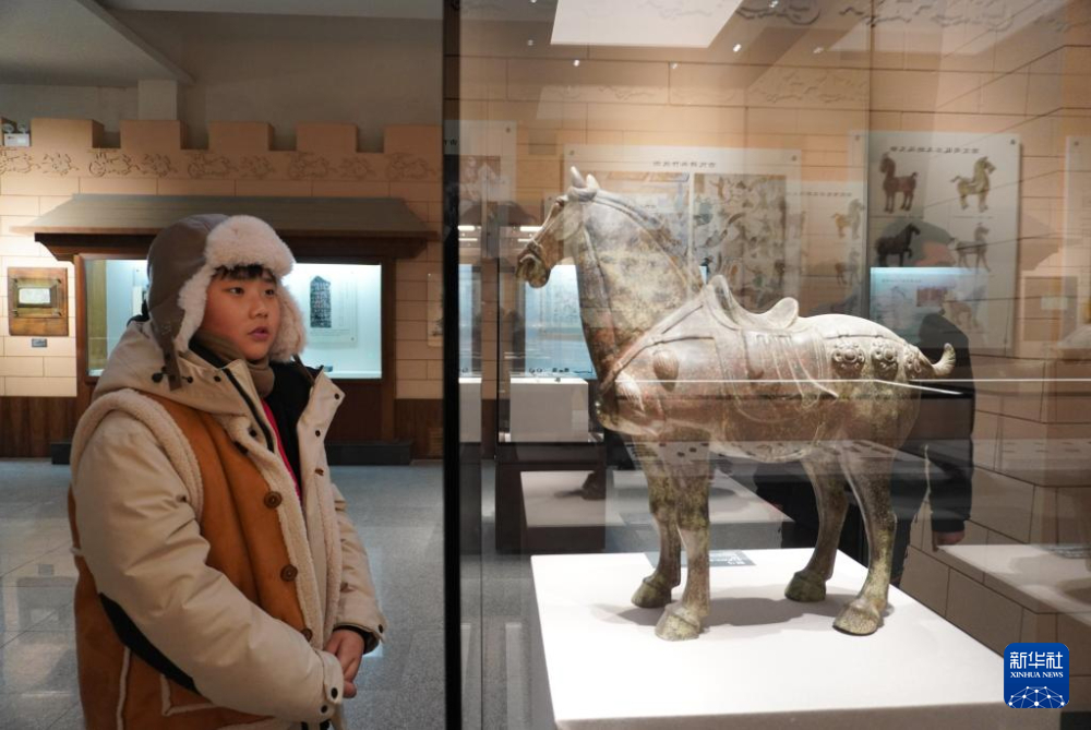 1月21日,在甘肅省敦煌市,參加研學(xué)活動(dòng)的學(xué)生參觀陽(yáng)關(guān)博物館。新華社記者 馬希平 攝