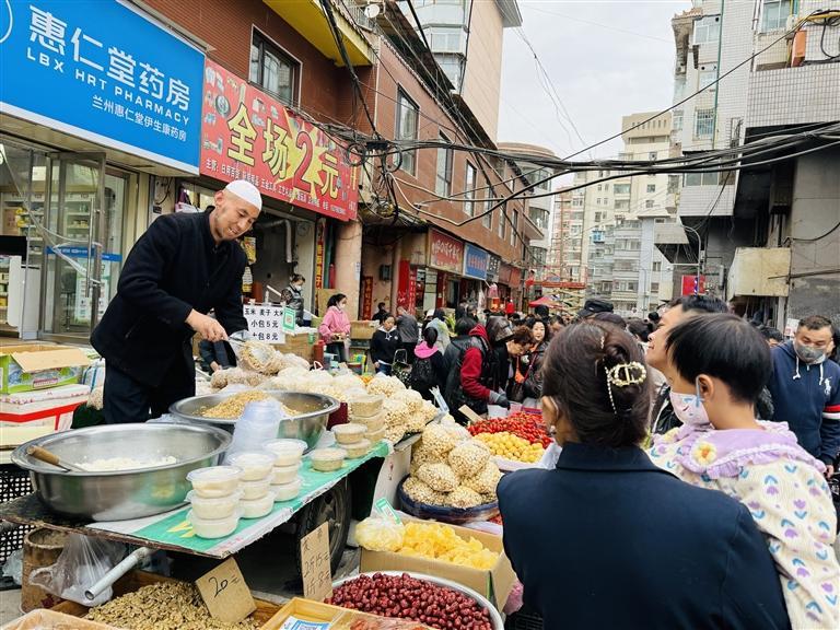 人間煙火味,最撫凡人心。說起煙火氣,小吃街巷一定算得上最有煙火氣的地方。華燈初上,蘭州正寧路夜市、大眾巷新光夜市、黃河食渡文化夜市等夜市人頭攢動(dòng),大家在各個(gè)小吃攤位前流連。甜醅子、灰豆子、釀皮、烤肉串、牛奶雞蛋醪糟、熱冬果、麻辣燙……蘭州小吃以獨(dú)有的風(fēng)味,征服了游客的味蕾——不少網(wǎng)友直呼,原來蘭州不僅擁有一碗面,更有內(nèi)涵豐富、口味獨(dú)特的硬核小吃,真是食客的“天堂”,誰不說一句蘭州的小吃好吃?