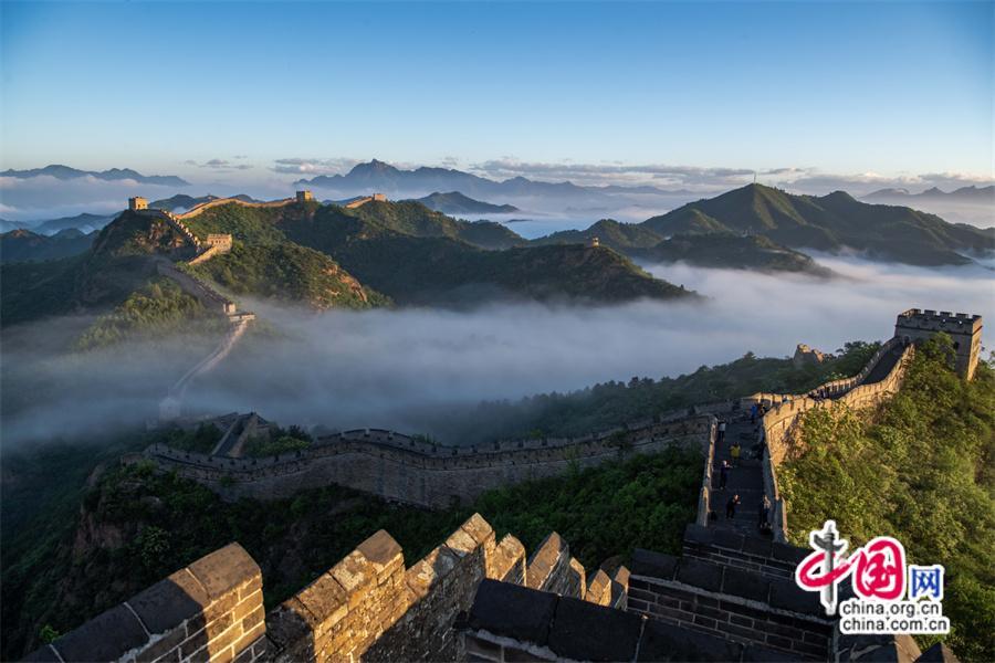 5月26日,雨后早晨,河北省承德市灤平縣境內的金山嶺長城出現(xiàn)云海奇觀,變化莫測間。