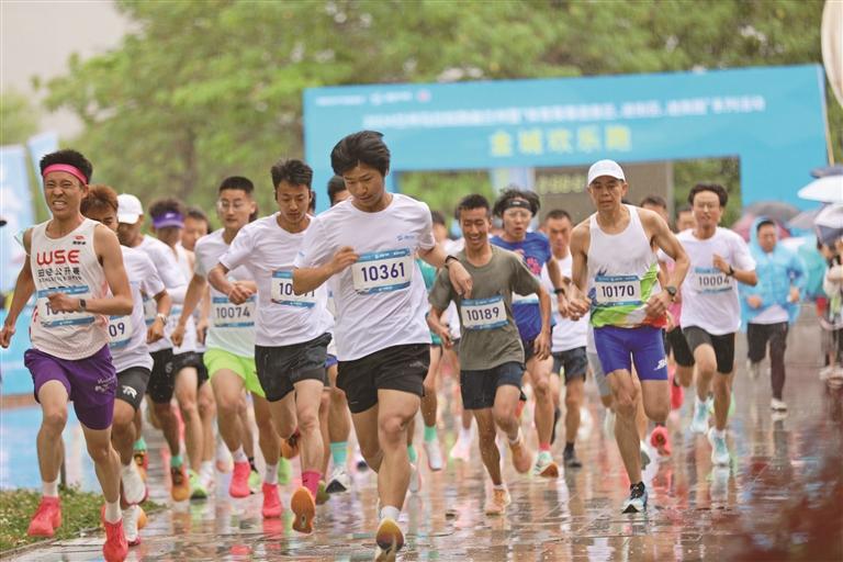 參賽者在細雨中歡樂開跑