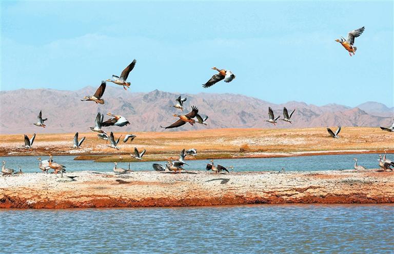 近年來,經(jīng)過當(dāng)?shù)赜嘘P(guān)部門和甘肅鹽池灣國家級自然保護(hù)區(qū)的有效治理和保護(hù),野生動(dòng)物種群逐漸增多。每年遷徙至此繁衍生息的鳥類種群和數(shù)量不斷增加,時(shí)常上演萬鳥翔集的壯觀場景,勾勒出一幅和諧壯美的大自然畫卷。