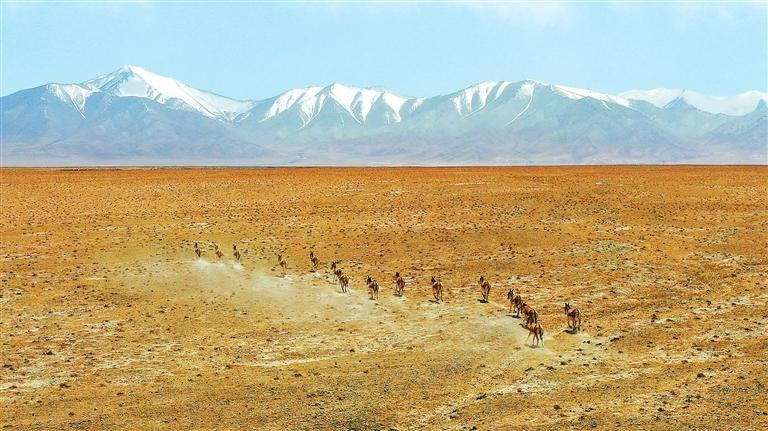 夏日的甘肅鹽池灣國家級自然保護(hù)區(qū)雪山巍峨,景色壯美。一群藏野驢時(shí)而追逐奔馳,時(shí)而悠閑覓食;大批北歸遷徙的候鳥自由翱翔,盡顯大自然的和諧之美。