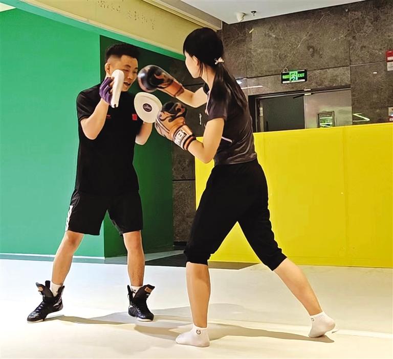 在實習(xí)之余,李王嘉楹報了一個自由搏擊課程來調(diào)劑生活。“學(xué)習(xí)防身術(shù)還能強身健體。”李王嘉楹說,在訓(xùn)練過程中,跟著教練一步一步訓(xùn)練,揮拳的那一刻,可以把所有的情緒都發(fā)泄出來,一場下來身心放松。話語中洋溢著自我提升的渴望和對未來的憧憬。