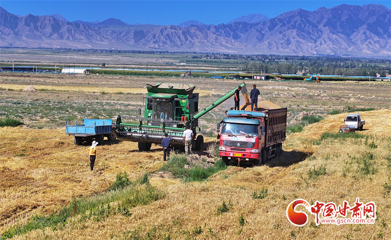 眼下,位于祁連山下的民樂縣南古鎮(zhèn)毛城村800畝連片小麥種植基地上,機(jī)聲隆隆,農(nóng)機(jī)手們駕駛收割機(jī)穿梭往返麥田之中搶收小麥,一派忙碌的豐收景象。近期,隨著民樂縣沿祁連山冷涼山區(qū)小麥迎來成熟季,民樂縣種植的26萬畝小麥進(jìn)入了繁忙的收割期。