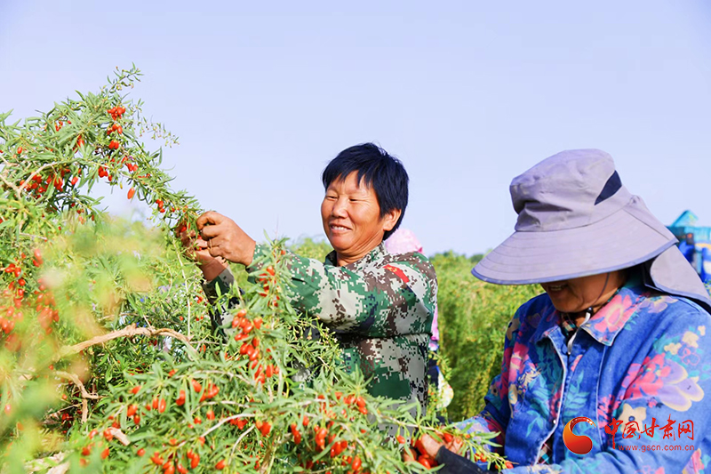 當?shù)谝豢|晨光穿透薄霧,照耀在玉門市柳河鎮(zhèn)二道溝村的枸杞田上時,只見一望無際的枸杞林郁郁蔥蔥,綠葉間點綴著密密麻麻的枸杞果。這些果實色澤鮮艷,飽滿圓潤,散發(fā)著誘人的光澤。農(nóng)戶們穿梭其間,手持籃子或袋子,忙碌而有序地進行采摘工作。他們的臉上洋溢著豐收的喜悅,歡聲笑語在田間地頭回蕩,構成了一幅幅生動和諧的豐收畫卷。