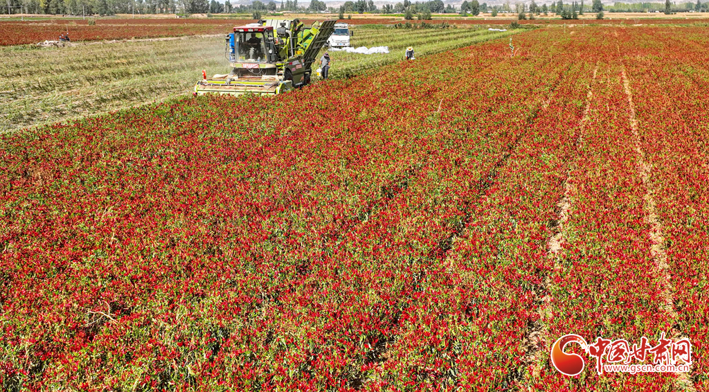 近日,臨澤縣平川鎮(zhèn)種植的3900多畝朝天椒進入采收期,朝天椒采收機馬達轟鳴,在田地里來回穿梭,快速采收。種植農戶們把采收的朝天椒運往晾曬場,經過分揀、晾曬、包裝后發(fā)往山東、河南、安徽、重慶、貴州等地訂單客戶手中。
