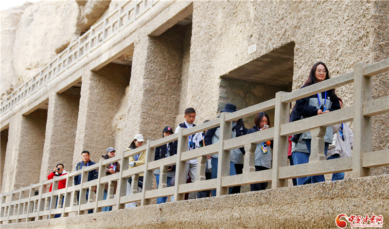 10月20日,由中央網(wǎng)信辦網(wǎng)絡(luò)傳播局指導(dǎo),甘肅省委網(wǎng)信辦、甘肅省文物局主辦,中國甘肅網(wǎng)、快手甘肅承辦的“千年石窟 匠心傳承”網(wǎng)上主題活動(dòng)來到敦煌,來自中央及省市縣各級(jí)網(wǎng)絡(luò)媒體記者、商業(yè)平臺(tái)編輯、網(wǎng)絡(luò)名人等組成的采訪團(tuán)走進(jìn)莫高窟,近距離感知佛教文化、全方位了解文化遺產(chǎn)保護(hù),續(xù)寫甘肅石窟故事。