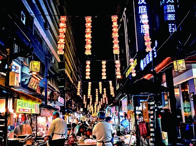沿著夜市向東走去,北邊的巷道里則是另一番景象??諝庵谢祀s著紅柳大串兒的肉香、油壺喧的面香、羊肉湯的鮮香……勾得游人味蕾大開(kāi),這就是大眾巷新光夜市了。