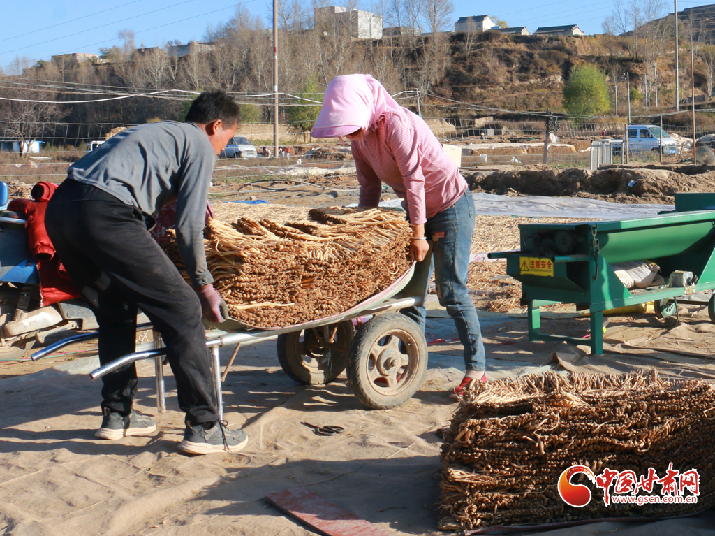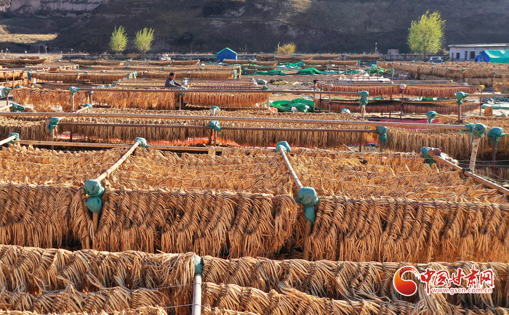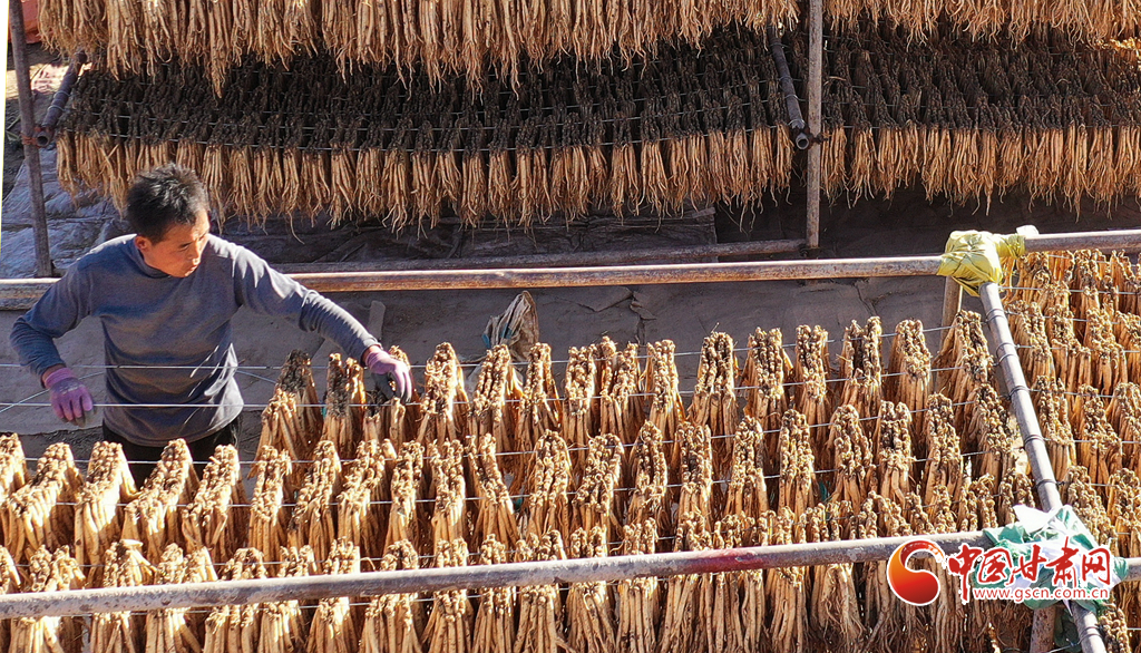 初冬時節(jié),天氣晴好,走進(jìn)岷縣十里鎮(zhèn),藥香四溢,隨處可見藥農(nóng)利用晴好天氣忙著晾曬中藥材的場景。